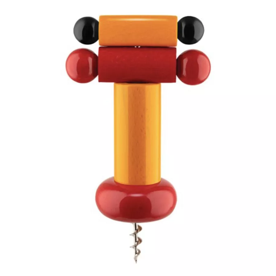 De Sotsass kurkentrekker, ontworpen door Ettore Sotsass, van Alessi heeft een diameter van 6 centimeter en een hoogte van 18 centimeter. Het handvat is gemaakt van FSC-gecertificeerd beukenhout en beschilderd met milieuvriendelijke verf. De kurkentrekker is verkrijgbaar in verschillende kleuren.