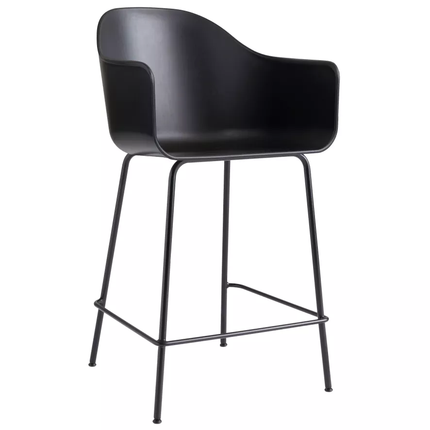 De Harbour Counter barkruk heeft een hoogte van 102 centimeter, een breedte van 58,5 centimeter en een diepte van 55,5 centimeter. De zithoogte is 68 centimeter. De barkruk heeft een kuip van 85% polypropyleen en 15% glasvezel en een zwart gepoedercoat stalen onderstel. De barkruk weegt 14 kilogram. De Harbour Counter barkruk van Audo Copenhagen is beschikbaar in diverse kleuren en is ook gestoffeerd verkrijgbaar.
