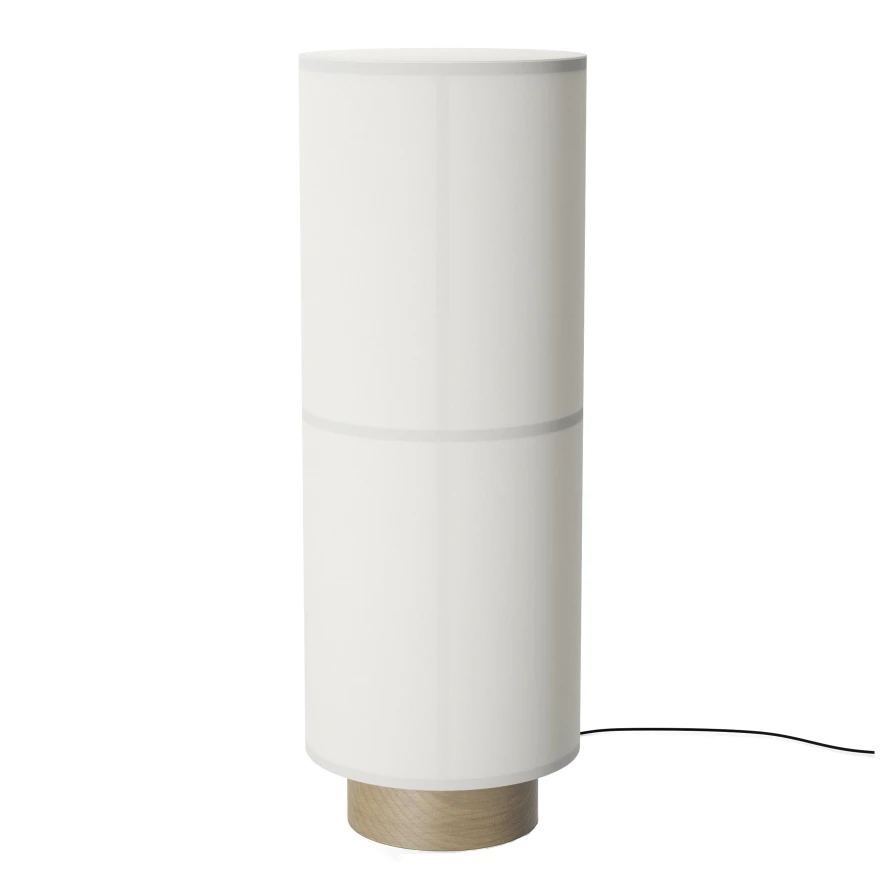 De Hashira vloerlamp is 83 centimeter hoog en heeft een diameter van 30 centimeter. Aan de lamp zit een snoer van 300 centimeter lang met daarop de dimmer. De lamp is gemaakt van staal, linnen en kunststof. De Hashira vloerlamp biedt plek aan twee lichtbronnen met een E27 fitting. Deze lichtbronnen worden niet meegeleverd. Er zijn meerdere varianten beschikbaar van de Hashira, waaronder verschillende soorten hanglampen, deze vloerlamp en een tafellamp.