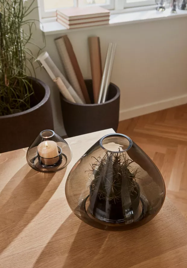 De Uno kandelaar large van AYTM heeft een diameter van 25,9 centimeter en een hoogte van 21 centimeter. Uno is gemaakt van glas en is verkrijgbaar in verschillende uitvoeringen. AYTM raadt aan Uno alleen te reinigen met een wat warm water, een milde zeep én een zachte microfiber doek. De kandelaar is niet geschikt voor de vaatwasser.
