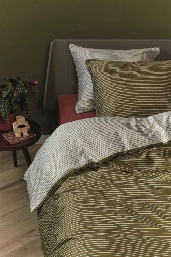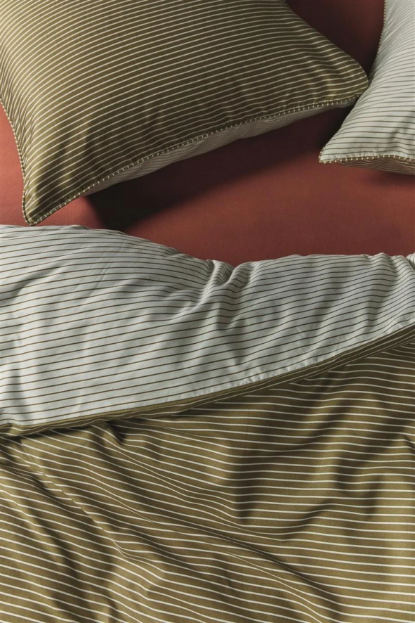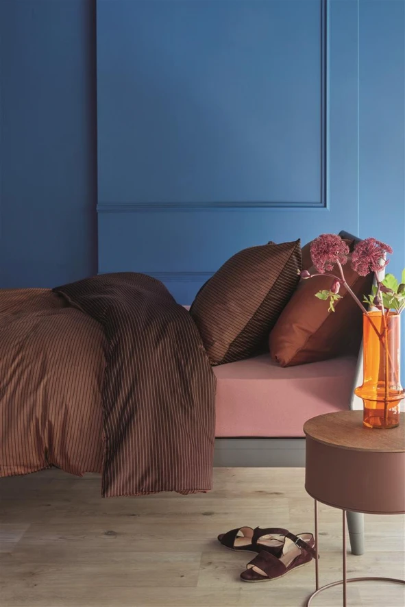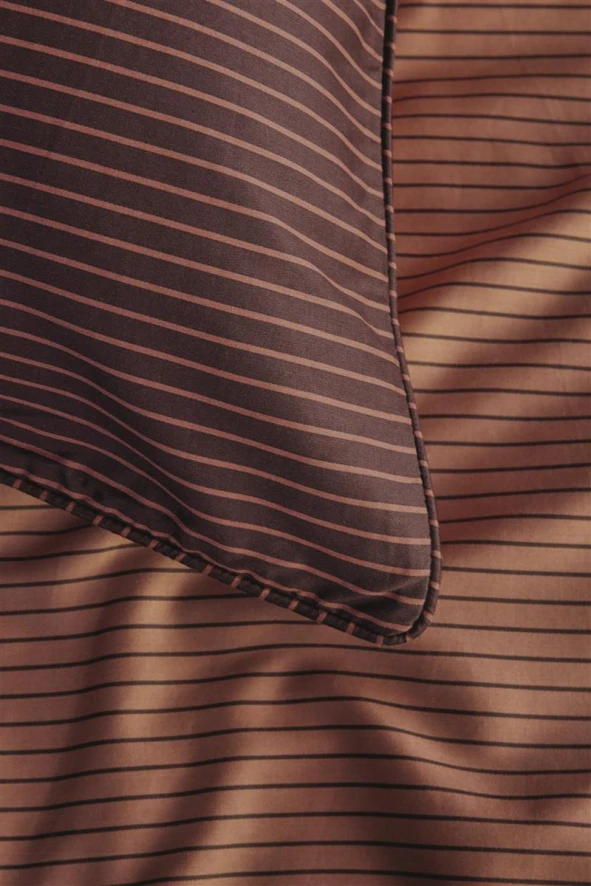 Het Impact dekbedovertrek 200×200/220 + 60×70 van Beddinghouse heeft een gestreept patroon op beide kanten en is voorzien van een instopstrook over de gehele breedte aan beide zijden. Het tweepersoons overtrek heeft een lengte van 200 tot 220 centimeter en een breedte van 200 centimeter, de twee meegeleverde kussenslopen zijn 70 centimeter lang en 60 centimeter breed. Het tweepersoonsdekbedovertrek is voor 50% gemaakt van katoensatijn met BCI (Better Cotton Initiative) label en voor 50% gemaakt van bamboe. Katoen zorgt voor een goede temperatuurregeling, waardoor het overtrek voor alle jaargetijden geschikt is. Bamboe is duurzaam materiaal en is van nature antibacterieel en sterk vocht absorberend, waardoor het overtrek langer fris blijft. Het dekbed is te wassen op een maximale temperatuur van 40 graden, is geschikt voor de droger (lage temperatuur) en kan gestreken worden. Het Impact dekbedovertrek is verkrijgbaar in verschillende kleuren.
