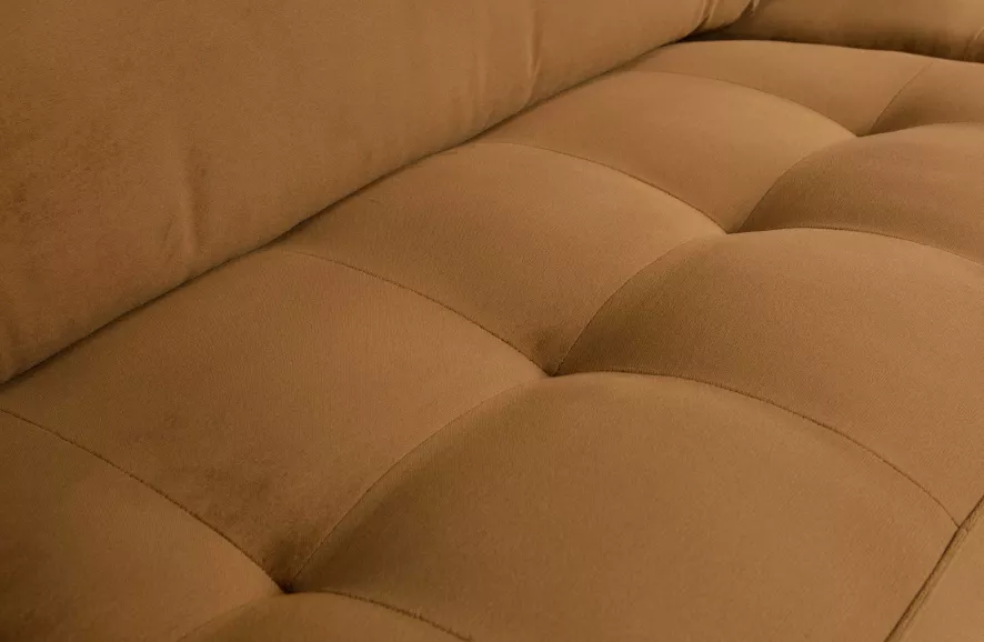 Het frame van de bank bestaat uit massief hout, spaanplaat, beverboard en cardboard. De bank heeft een zigzagvering. De zitting heeft een schuimvulling T3037, een standaard schuim met een hoge duurzaamheid en een comfortabel zitcomfort. De rug heeft een vulling van 70% gesneden schuim en 30% siliconen.