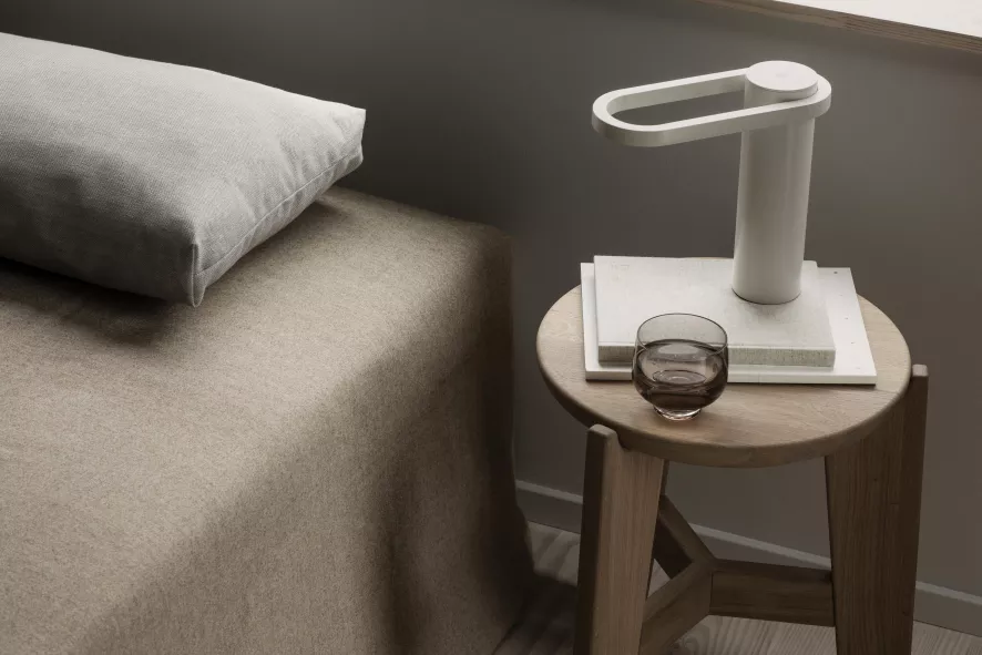 De Hoop tafellamp van Blomus is ontworpen door Antoine Rouzeau. De tafellamp is 23 centimeter lang, 9 centimeter diep en 22 centimeter hoog. De lamp is draadloos en is gemaakt van gepoedercoat aluminium. De tafellamp heeft een brandduur van 8 tot 40 uur. De batterij is op te laden via een magnetische verbinding. De rode of groene lichtkleur geeft het laadproces aan. De lichtopbrengst is 87 lumen en de lamp heeft een waterdichtheid van IP54. De lichtintensiteit is gemakkelijk te veranderen met het aanraakgevoelige knopje bovenop de lamp. De tafellamp is verkrijgbaar in verschillende kleuren en is geschikt voor binnen -en buitengebruik.