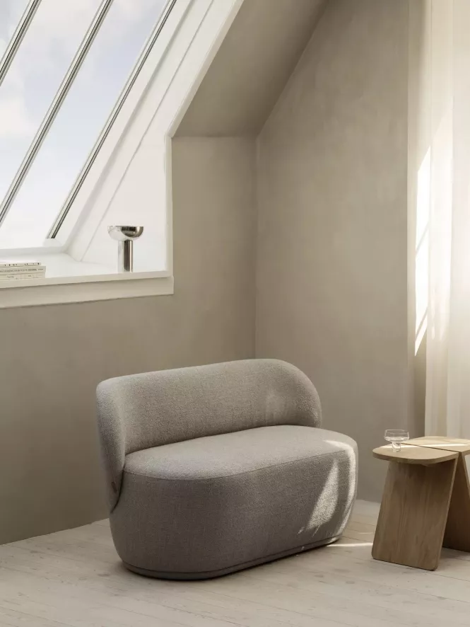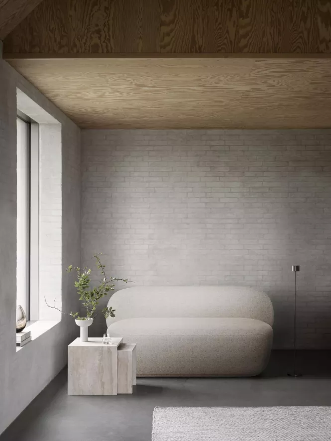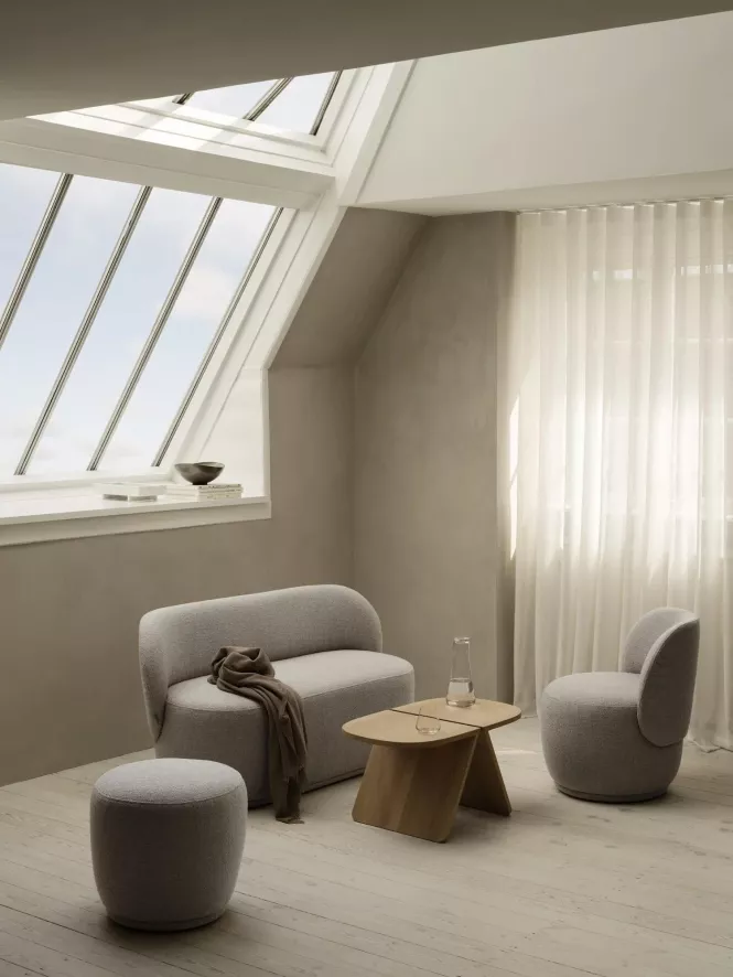 De Kuon 2-zits bank van Blomus is ontworpen door Kazushige Miyake. De bank heeft een breedte van 137,5 centimeter, een diepte van 69 centimeter en een hoogte van 71 centimeter. De bank heeft een eikenhouten frame en is bekleed in vilt met een bouclé uitstraling, bij voorkeur wordt er aangeraden de poef wekelijks te stofzuigen, eventueel met de helft van de zuigkracht. Verwijder eventuele vloeistoffen door te deppen met een katoenen doek. De Kuon 2-zits bank is in verschillende kleur variaties te verkrijgen.