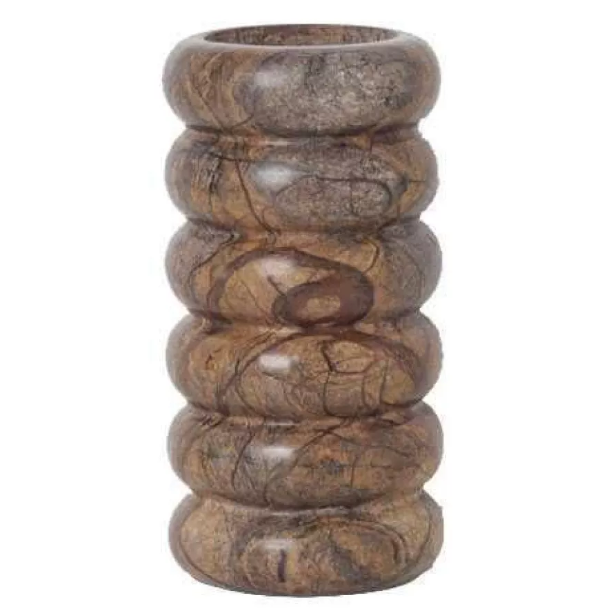 De Bendum vaas van Ferm Living is 18 centimeter hoog en heeft een diameter van 9,2 centimeter. De vaas is gemaakt van bruin Bidsar marmer. Maak de vaas schoon met een vochtige doek, of met een vochtige doek en een mild schoonmaakmiddel. Omdat marmer een natuurproduct is, kunnen de kleuren variëren.