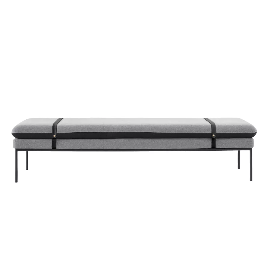 De Turn daybed bank Wool black straps van Ferm Living heeft een lengte van 190 centimeter, een hoogte van 42,5 centimeter en een diepte van 80 centimeter. De bank heeft metalen poten, een bekleding van wol en is voorzien van twee zwartleren riemen. Je kunt voor de Turn daybed bank ook kiezen uit andere varianten.