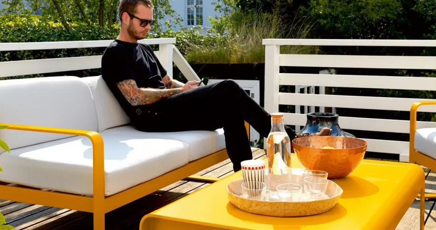 Het Fermob Bellevie lounge tuinbank is ontworpen door Pagnon Pelhaître.