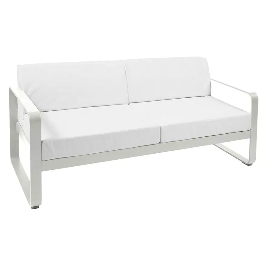 De Bellevie bank van Fermob heeft een frame en basis van aluminium. Het aluminium is verkrijgbaar in 24 verschillende kleuren, elke kleur is kleurvast. De kussens zijn gemaakt van Sunbrella outdoor fabric en zijn daardoor bestand tegen vlekken. De ademende stof laat lucht door en voorkomt condensatie. De bank heeft een lengte van 160 centimeter, een diepte van breedte van 75 centimeter en een hoogte van 65 centimeter.