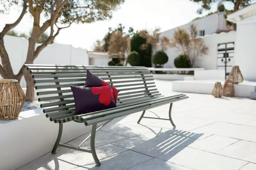 De Louisiane tuinbank 200 van Fermob heeft een frame gemaakt van stalen buizen. De rugleuning en zitting van de bank zijn gemaakt van metalen latten. Er is genoeg keuze in kleur: de tuinbank is beschikbaar in 24 kleuren. De tuinbank van Fermob heeft een goede weersbestendigheid en zal niet verbleken in de zon. De breedte van de bank is 200 centimeter, de diepte 72 centimeter en de hoogte 80 centimeter.