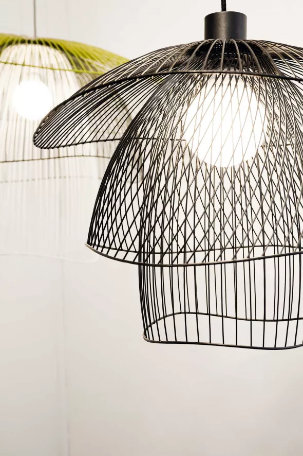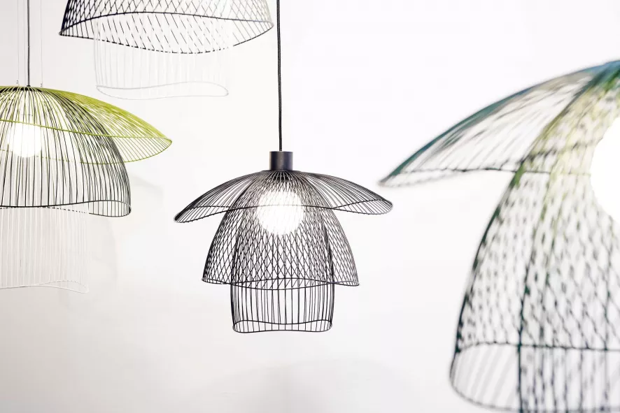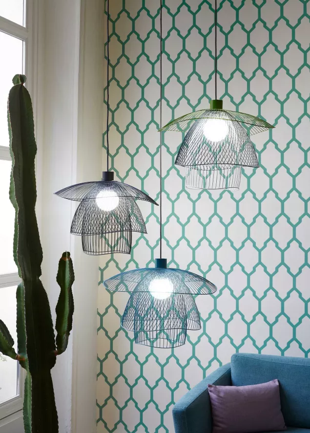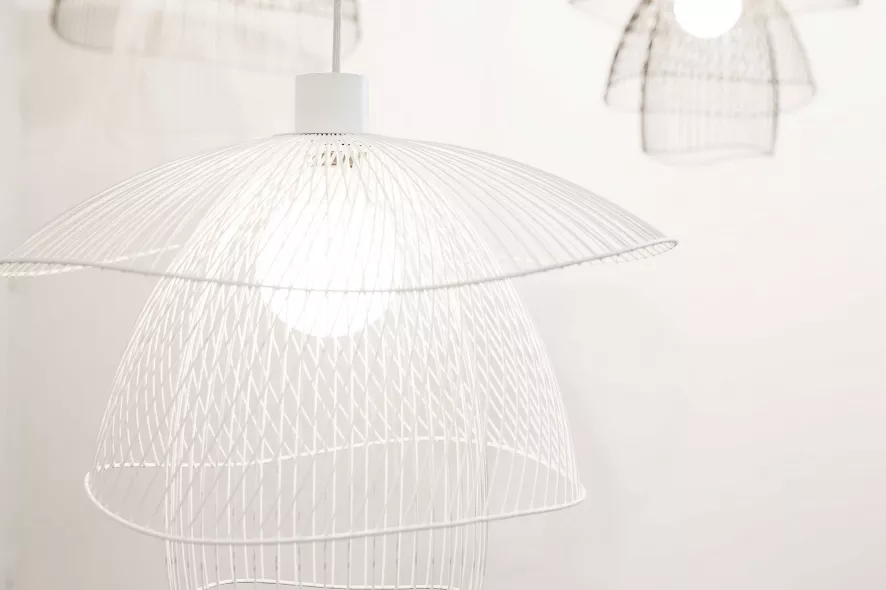 De Forestier Papillon hanglamp small is 38,4 centimeter hoog. De diameter is 56 centimeter, het gewicht is 3 kilo. Je gebruikt voor de Forestier Papillon hanglamp small een lichtbron met een E27 fitting van 60 Watt (deze wordt niet meegeleverd). De lamp is verkrijgbaar in wel zeven verschillende kleuren.