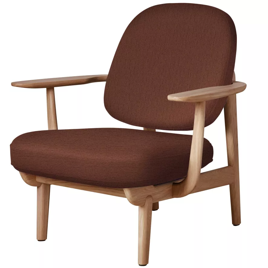 De Fritz Hansen Fred JH97 fauteuil geolied eiken is 77,4 centimeter breed; 80,5 centimeter diep en 85,2 centimeter hoog. De zithoogte is 41 centimeter en de zitdiepte is 50,4 centimeter. De armleuningen zijn 55,6 centimeter hoog. Het frame van de loungestoel is gemaakt van FSC gecertificeerd eikenhout en heeft een wat donkere, geoliede kleur. Het hout kan je altijd met een droge doek afnemen. Mocht je een vochtige doek willen gebruiken, maak het oppervlak daarna dan wel direct schoon. Zo houd je het meubel zo fris mogelijk. De Fritz Hansen Fred JH97 fauteuil geolied eiken is ontworpen door Jaime Hayon en is ook verkrijgbaar met verschillende soorten frames. Daarnaast ook verkrijgbaar in diverse stofferingen.