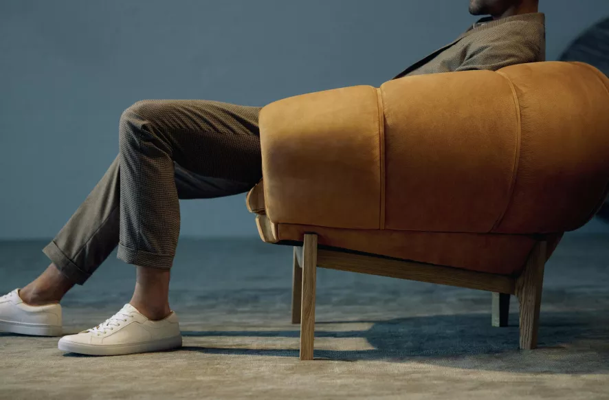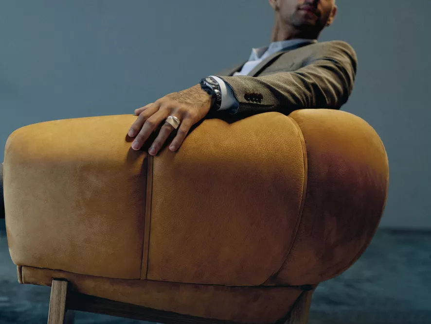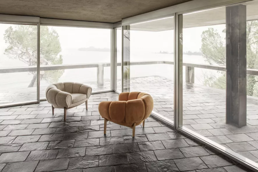 De Gubi Croissant fauteuil is ontworpen door Illum Wikkelsø.