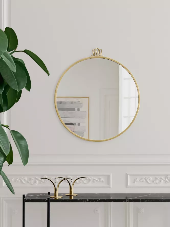 De Randaccio Circulaire spiegel 60 cm van Gubi is een ronde spiegel met een lijst gemaakt van messing met een vintage finish. De spiegel heeft een diameter van 60 centimeter. Je bevestigt de Randaccio Circulare aan de wand. Als het design van de spiegel je aanstaat maar je toch liever een andere maat wil, bekijk dan ook de Randaccio Circulare met een diameter van 42 of 70 centimeter.