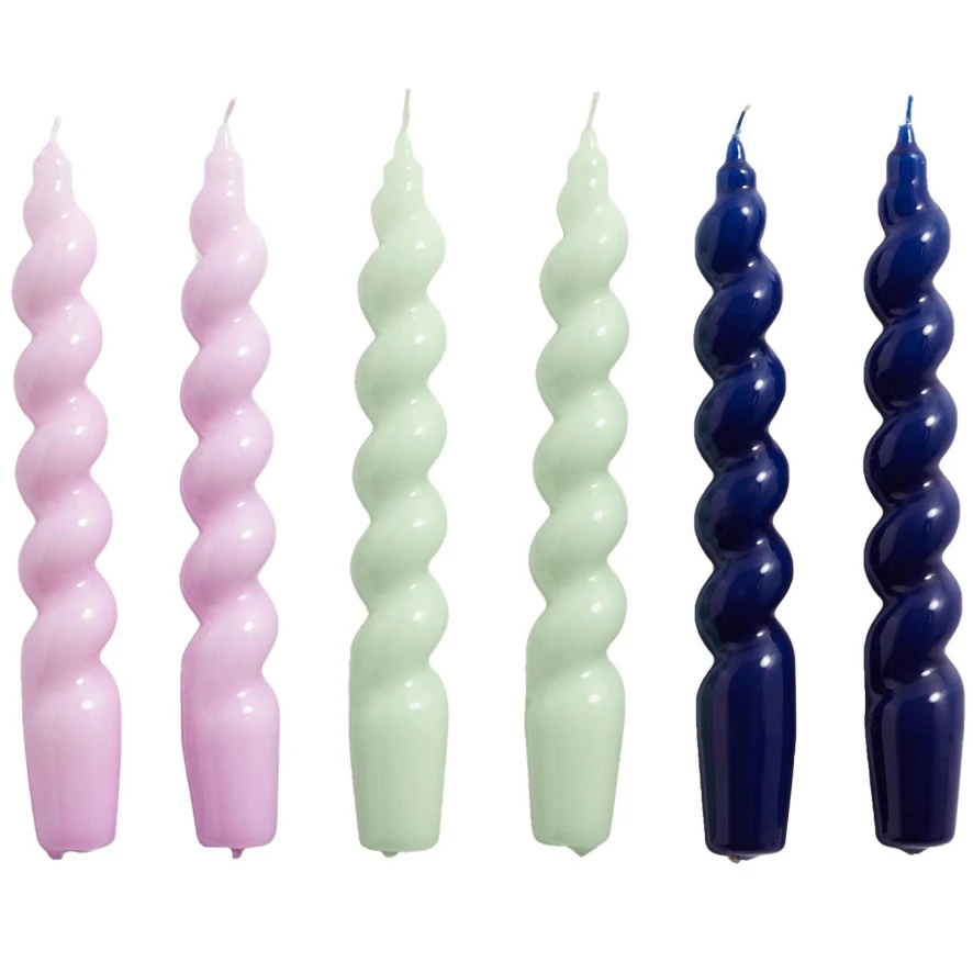 Hay Candle Spiral Kaarsen Set Van 6 Light Blue, Mint, Green