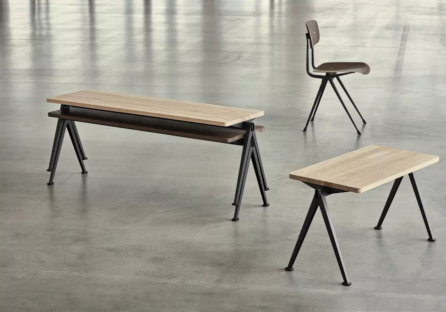 De Hay Pyramid 11 eetbank 85×40 is ontworpen door Wim Rietveld.