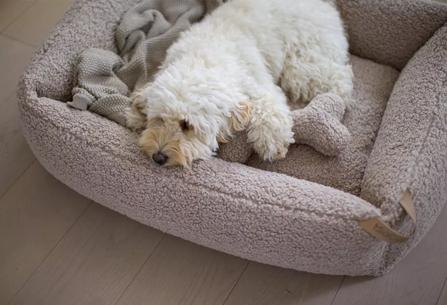 De Senso hondenmand medium van MiaCara is 91 centimeter lang, 71 centimeter breed en 26 centimeter hoog. De mand heeft een schuimvulling gemaakt van 100% polyurethaan. Het kussen aan de binnenkant is gemaakt van 60% katoen en 40% polyester. De bekleding is gemaakt van zachte bouclé stof. De Senso hondenmand is verkrijgbaar in verschillende kleuren. Het kussen is te wassen met mild wasmiddel op een maximale temperatuur van 60 graden. Het matras en de bekleding zijn te wassen op een maximale temperatuur van 30 graden.