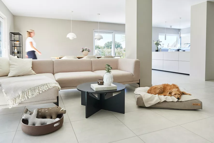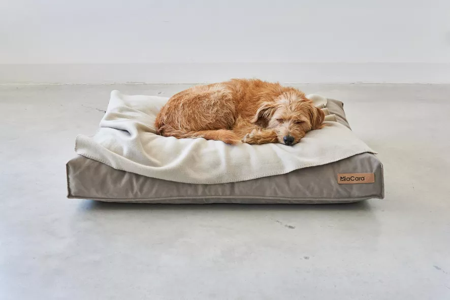 Het Velluto hondenkussen medium van MiaCara heeft een lengte van 100 centimeter, een breedte van 75 centimeter en een hoogte van 12 centimeter. Dit hondenkussen heeft een afneembare en wasbare hoes die voor 60% uit katoen en voor 40% uit polyester bestaat. Deze hoes mag op 40 graden Celsius in de wasmachine gewassen worden of gestoomd worden. Na het reinigen dient de hoes aan de lucht gedroogd te worden en mag niet gestreken worden. Het binnen kussen is gemaakt van katoen en heeft een vulling van stabiel, duurzaam en hypoallergeen polyurethaan. Dit binnen kussen mag met een mild wasmiddel tot 60 graden Celsius in de wasmachine gewassen worden. Na het reinigen dien je dit binnen kussen goed te centrifugeren en daarna aan de lucht te drogen. Het binnen kussen mag eventueel tot 60 graden Celsius in de droogtrommel gedroogd worden. Let hierbij wel op dat het niet te droog wordt. Dit hondenkussen is geschikt voor Beagles, Collies, Cocker Spaniels, Ierse Setters, Schnauzers, en andere middelgrote hondenrassen. Het Velluto hondenkussen medium van MiaCara is in verschillende kleuren en formaten verkrijgbaar.