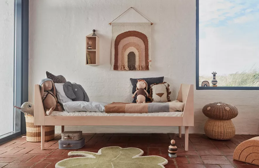 Het Hevali kinderbed 70×165 van OYOY heeft een lengte van 165 centimeter, een breedte van 74,8 centimeter en een hoogte van 70 centimeter.