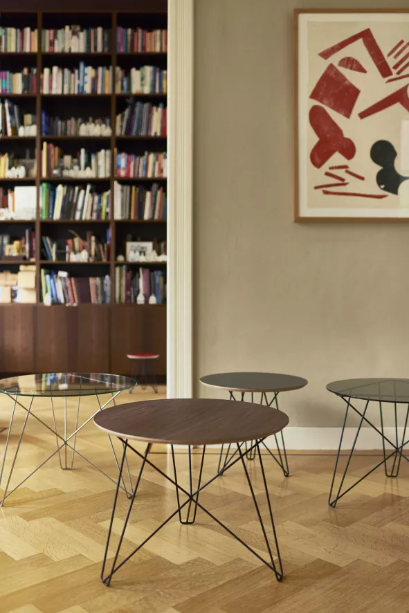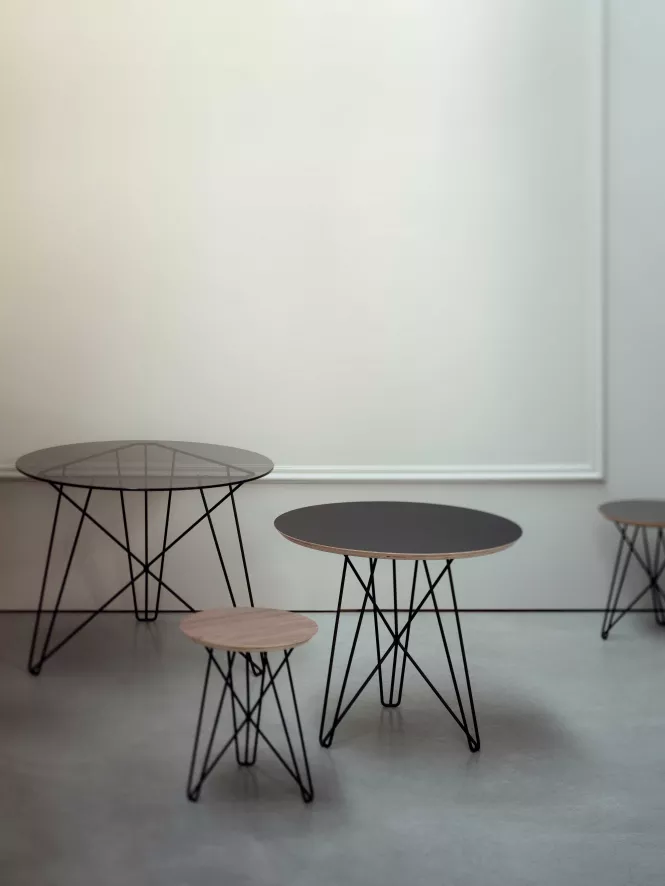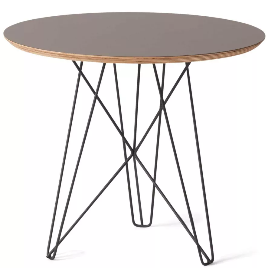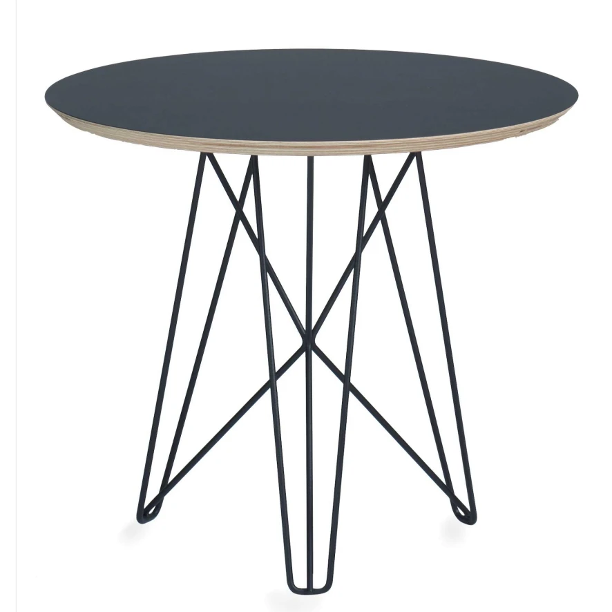 De IJhorst bijzettafel M van Spectrum heeft een diameter van 50 centimeter en een totale hoogte van 43 centimeter. De bijzettafel heeft een onderstel van draadstaal dat afgewerkt is met een zwarte poedercoat. Het tafelblad is verkrijgbaar in Amerikaans notenfineer en ‘Extreme Matt’ laminaat in de kleuren Robijnrood, Lever en Zwart. De IJhorst bijzettafel van Spectrum is verkrijgbaar in twee andere formaten.
