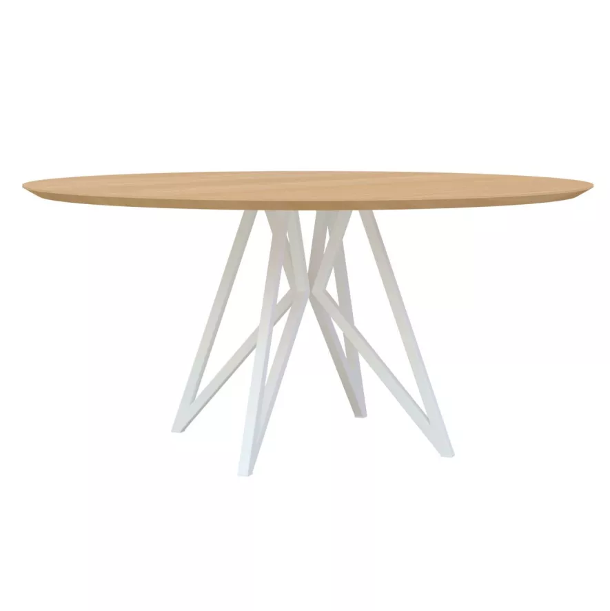 De Butterfly Quadpod tafel 140 van Studio HENK heeft een eiken tafelblad met een onderstel van kokerstaal. De Butterfly tafel heeft een diameter van 140 centimeter en is 74 centimeter hoog. Het tafelblad is 3 centimeter dik. Het onderstel kan in wit of zwart staal. Het tafelblad kan geleverd worden in verschillende afmetingen en kan in naturel lak, hardwax olie, witte lak of zwarte lak. Voor de rand van het blad kan je kiezen uit rechte hoeken of een speciale verjongd afgeronde hoek (schuin afgesneden). Ten slotte kan je ook kiezen voor een rechthoekig of ovaal tafelblad.