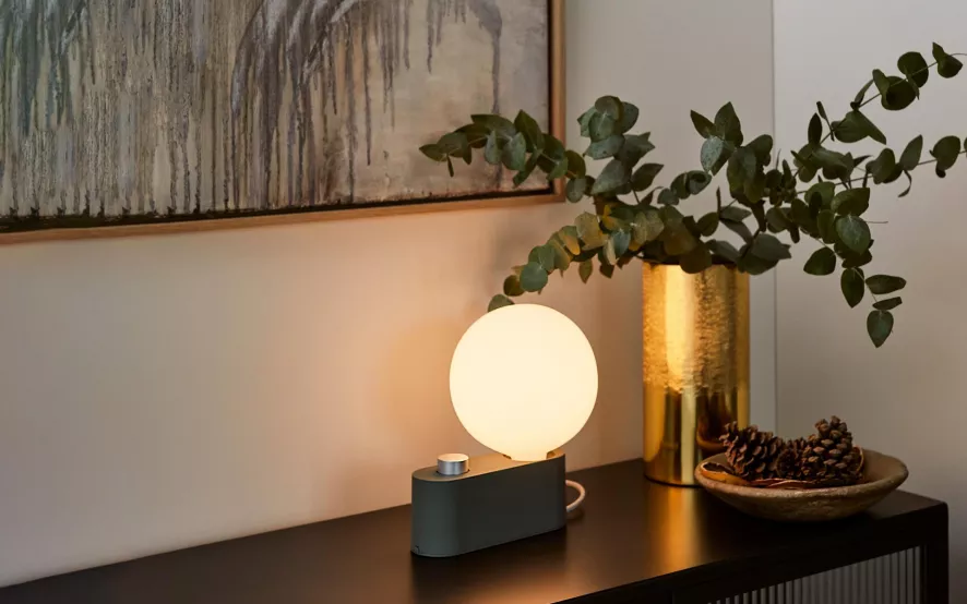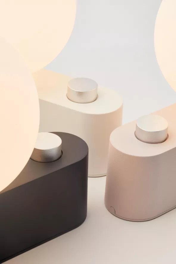 De Alumina tafellamp is gemaakt van gepoedercoat aluminium en wordt geleverd met de Sphere IV LED lichtbron van Tala. Het armatuur is 22 centimeter breed en 25 centimeter hoog. De lichtbron heeft een diameter van 15 centimeter en heeft een E27 fitting. De lichtbron heeft een verbruik van 8 Watt, een lichtopbrengst van 680 Lumen en is voorzien van een dim-to-warm technologie waarmee je de kleurtemperatuur van het licht van 2800K tot 2000K kunt dimmen. De dimmer bevindt zich op het armatuur. Alumina is beschikbaar in diverse kleuren.