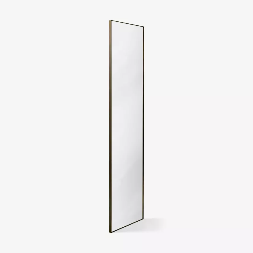 De Amore spiegel 190×60 van &Tradition heeft een lengte van 60 centimeter, een diepte van 3 centimeter en een hoogte van 190 centimeter. De spiegel heeft een basis van MDF met daar bovenop een zilverkleurige spiegel naar Italiaanse kwaliteit. Deze is omlijst met 3 millimeter dik, gelast en gepolijst messing. De achterkant van de spiegel is bedekt met zacht textiel zodat er tijdens het ophangen van de spiegel geen krassen op de muur ontstaan. De &Tradition Amore Spiegel 190×60 heeft een totaalgewicht van 29 kilogram en is ook verkrijgbaar in een ronde variant.