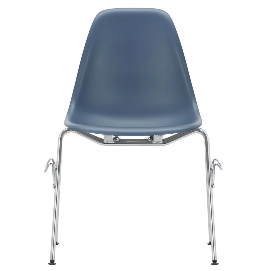 De Eames DSS stapelbare stoel van Vitra heeft een hoogte van 81 centimeter, een breedte van 60 centimeter en een diepte van 55 centimeter. De Eames stoel heeft een verchroomd staalbuisonderstel met koppelbeugels. De zitschaal van de stoel is gemaakt van gekleurd propyleen, de stoelen kun je op de grond of op een stapelkar tot 8 hoog opstapelen.