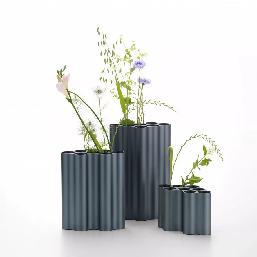 De Nuage vaas medium van Vitra is gemaakt van geadoniseerd aluminium en heeft rubberen stoppen. Je kunt voor de wolkvormige vaas kiezen uit de kleuren Ivy, Light Silver, Pastel Blue en Steel Blue. De vaas maat medium heeft een lengte van 19,5 centimeter, een breedte van 11 centimeter en een hoogte van 24 centimeter. De vaas is ook beschikbaar in de maten small en large. Onderling kun je de verschillende maten en kleuren goed met elkaar combineren.